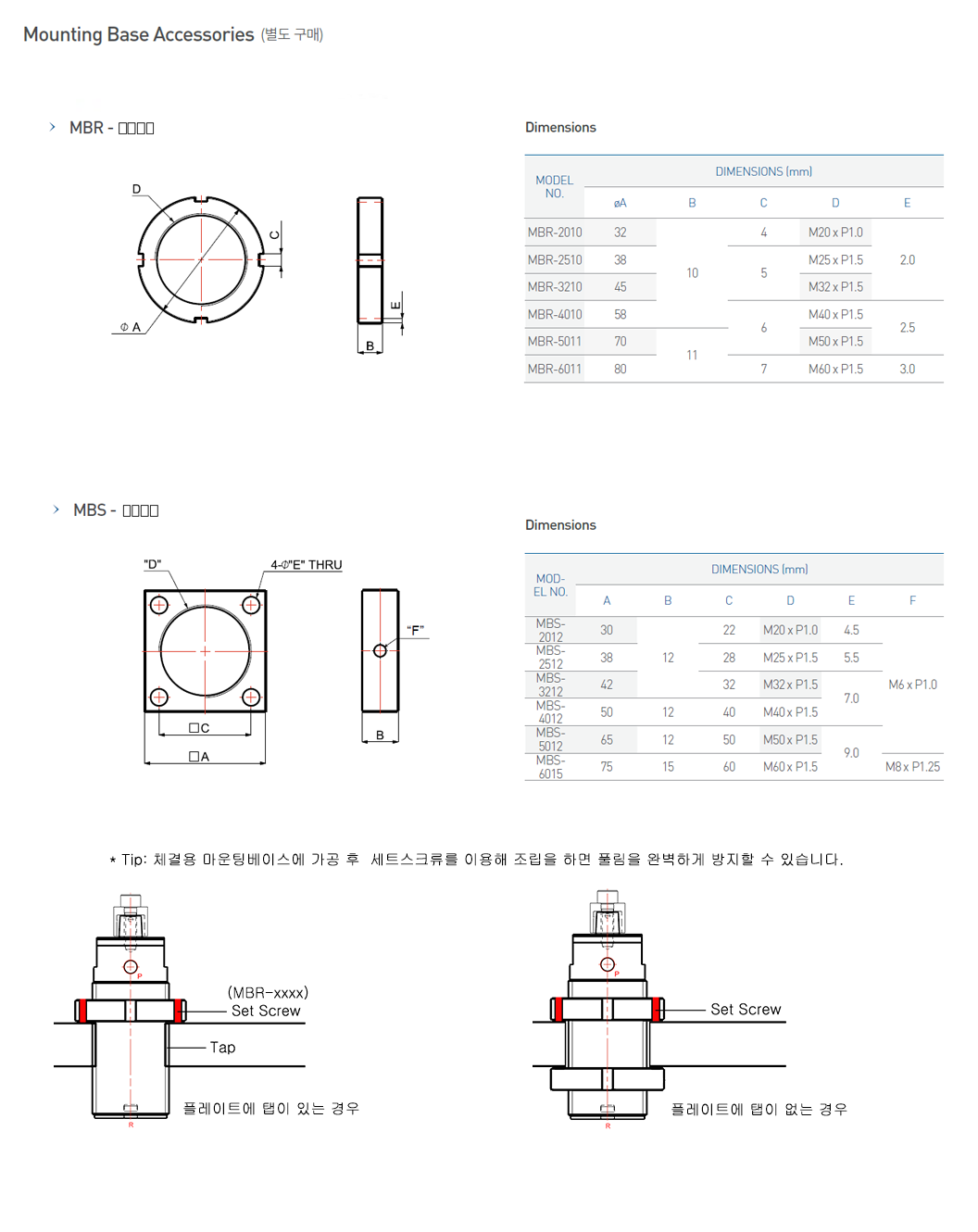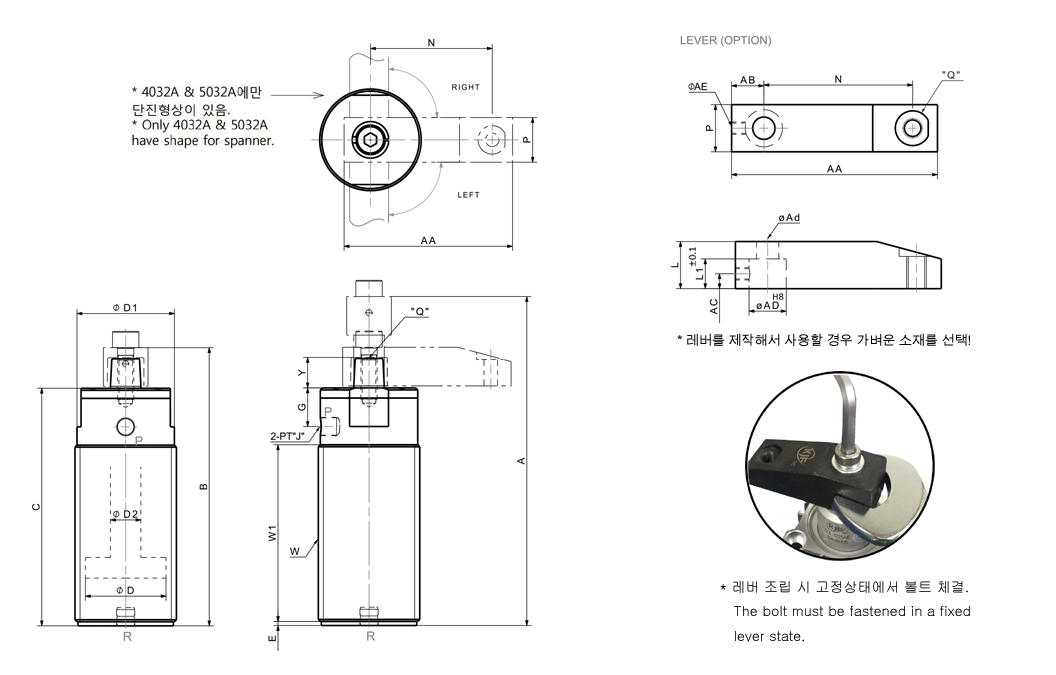 • <회전동작: "SDL" Type, 클램핑시 반시계방향/"SDR" Type 클램핑시 시계방향>