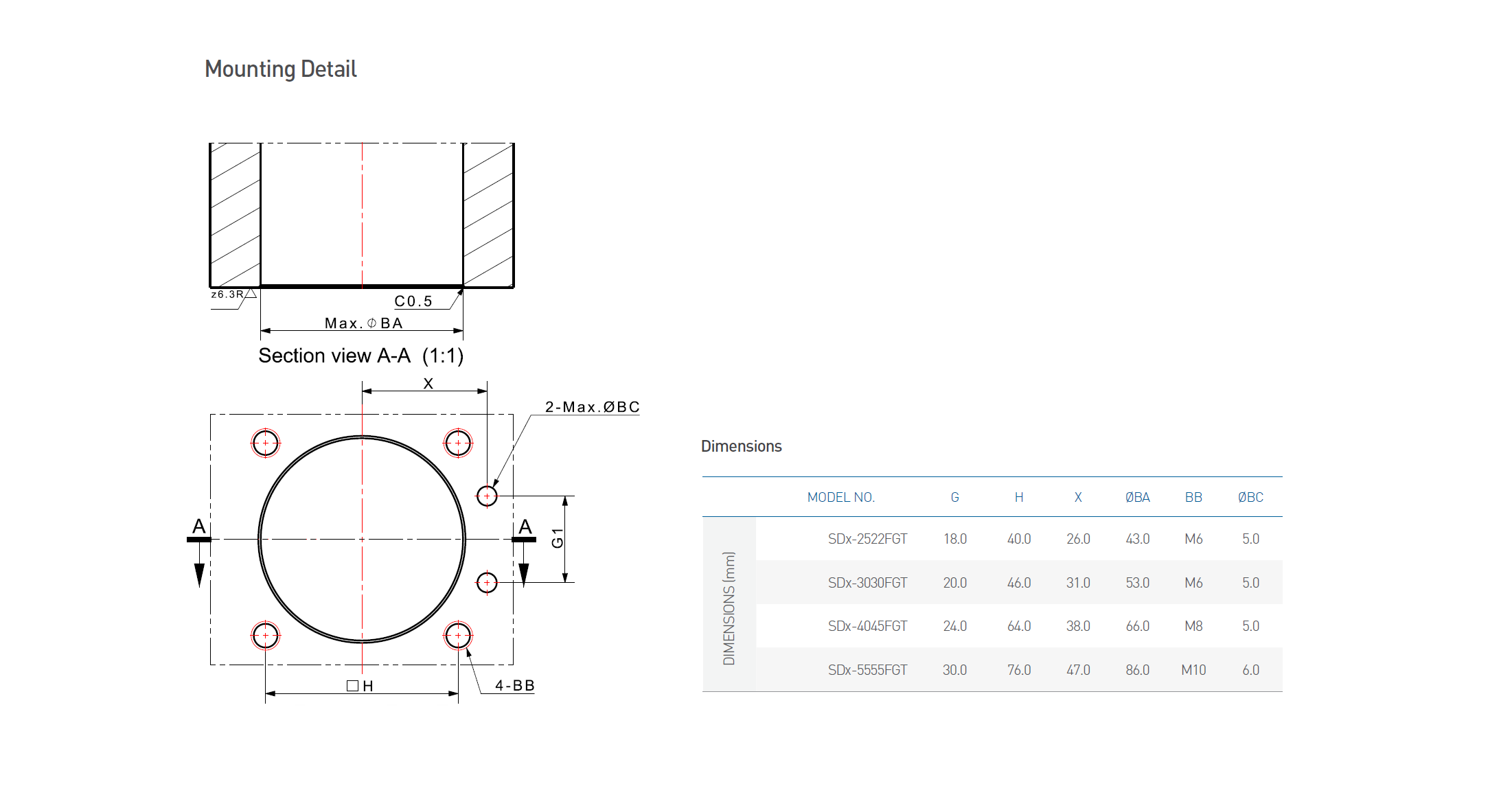 | Model No. | Type | Max. Cylinder Force(kgf) |